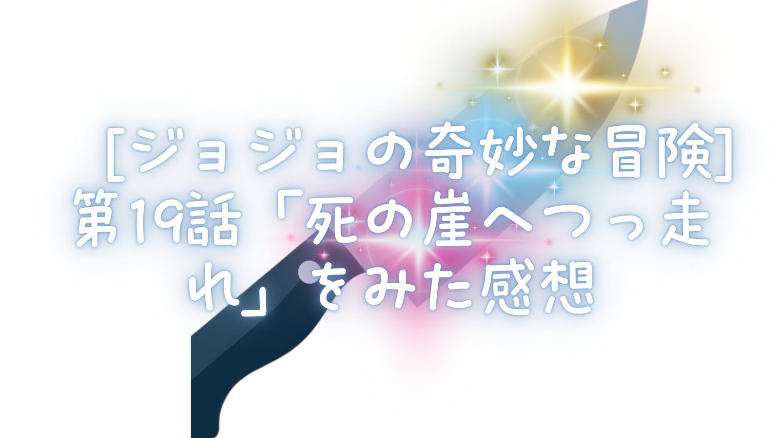 「ジョジョの奇妙な冒険」第19話「死の崖へつっ走れ」を視聴した感想を載せました。