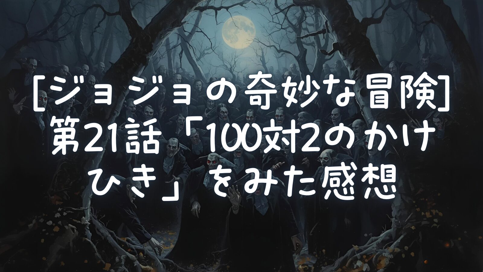 「ジョジョの奇妙な冒険」第21話「100対2のかけひき」を視聴した感想を載せました。