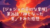 「ジョジョの奇妙な冒険」第25話「超生物の誕生!!」を視聴した感想を載せました。