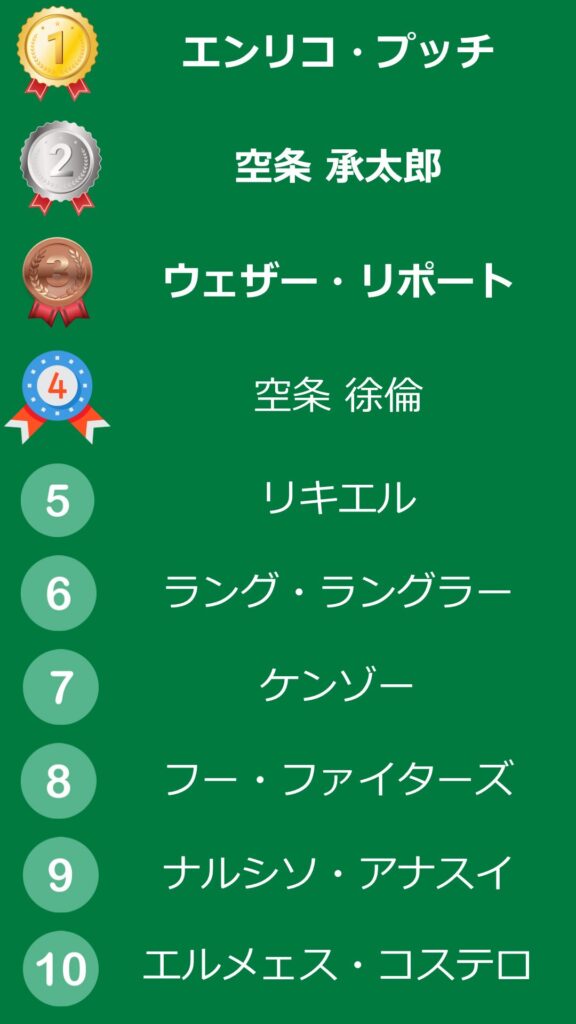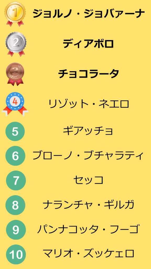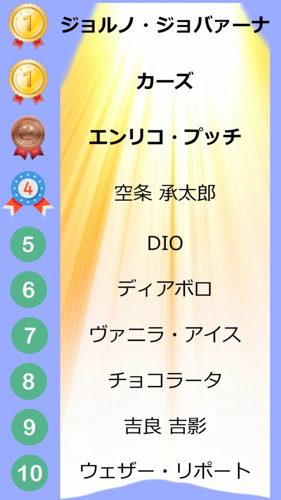 - 1位タイ:ジョルノ・ジョバァーナ
