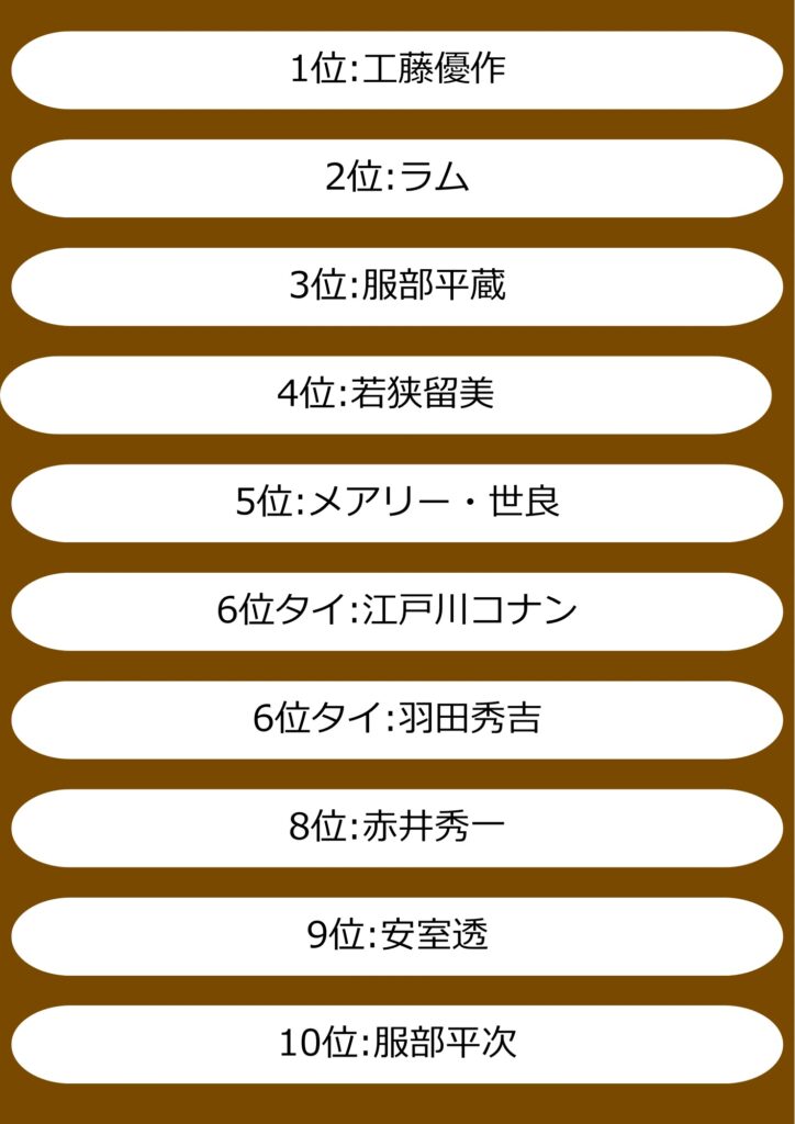 - 8位:赤井 秀一(諸星 大・ライ・沖矢 昴)